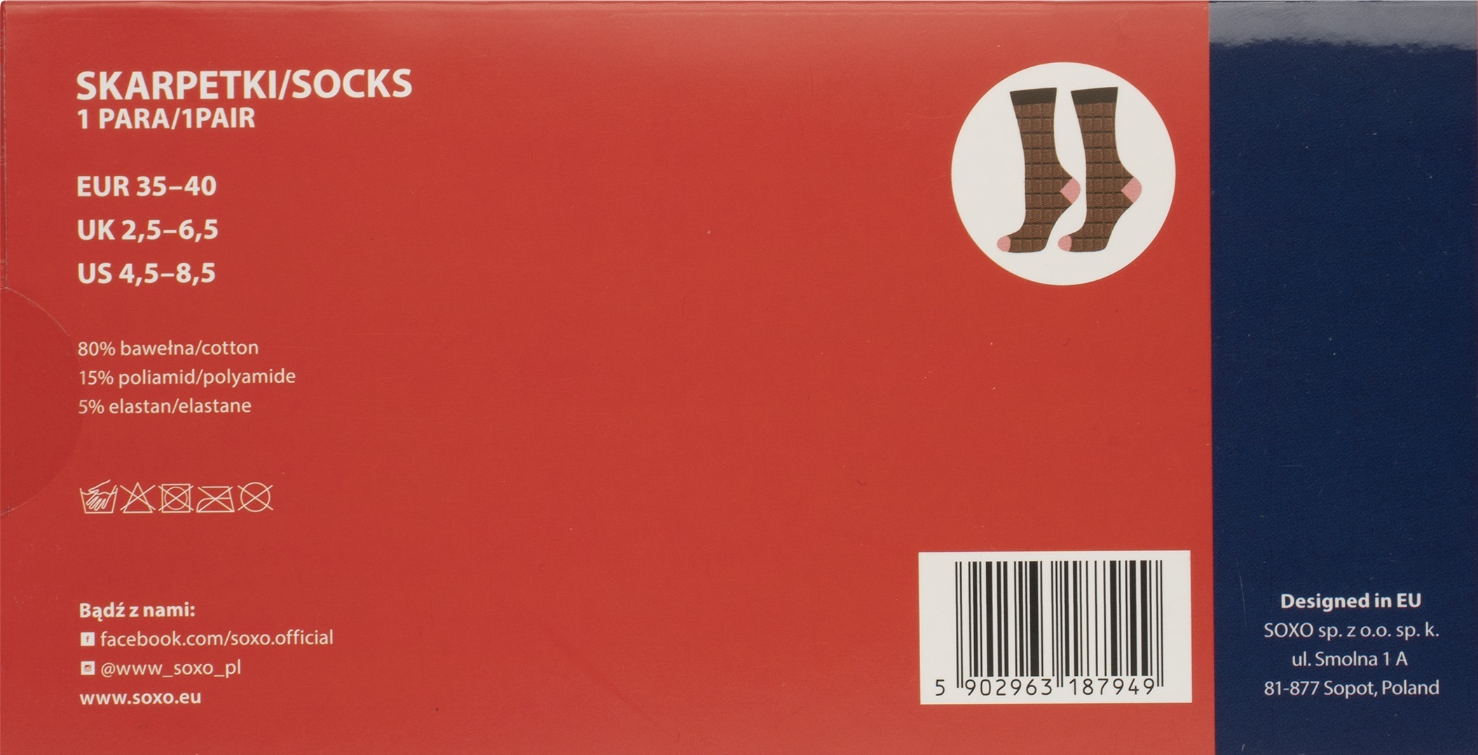 Les chaussettes SOXO en coton allient mode et confort - une combinaison que vous allez adorer dès la première fois que vous les portez ! Des chaussettes colorées vous feront sourire toute la journée ! Sentez-vous spécial et faites-vous un cadeau.